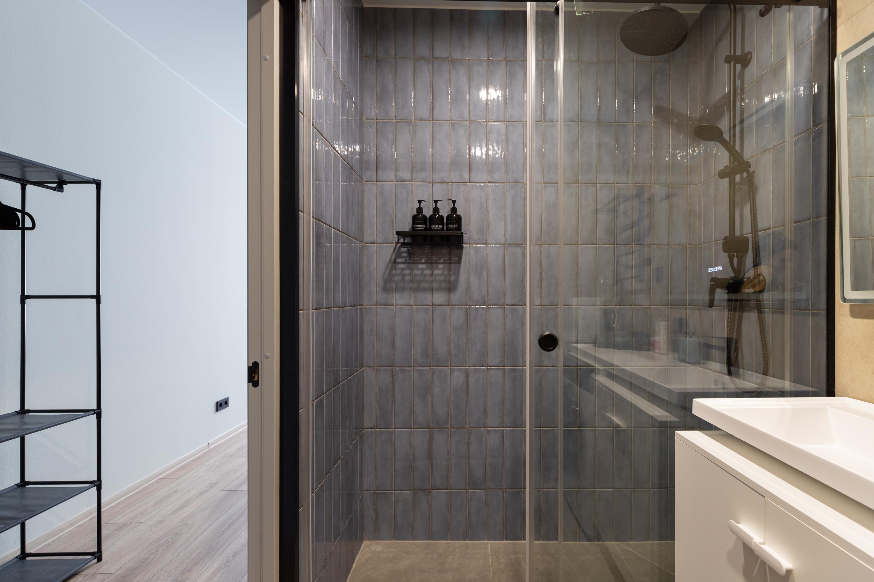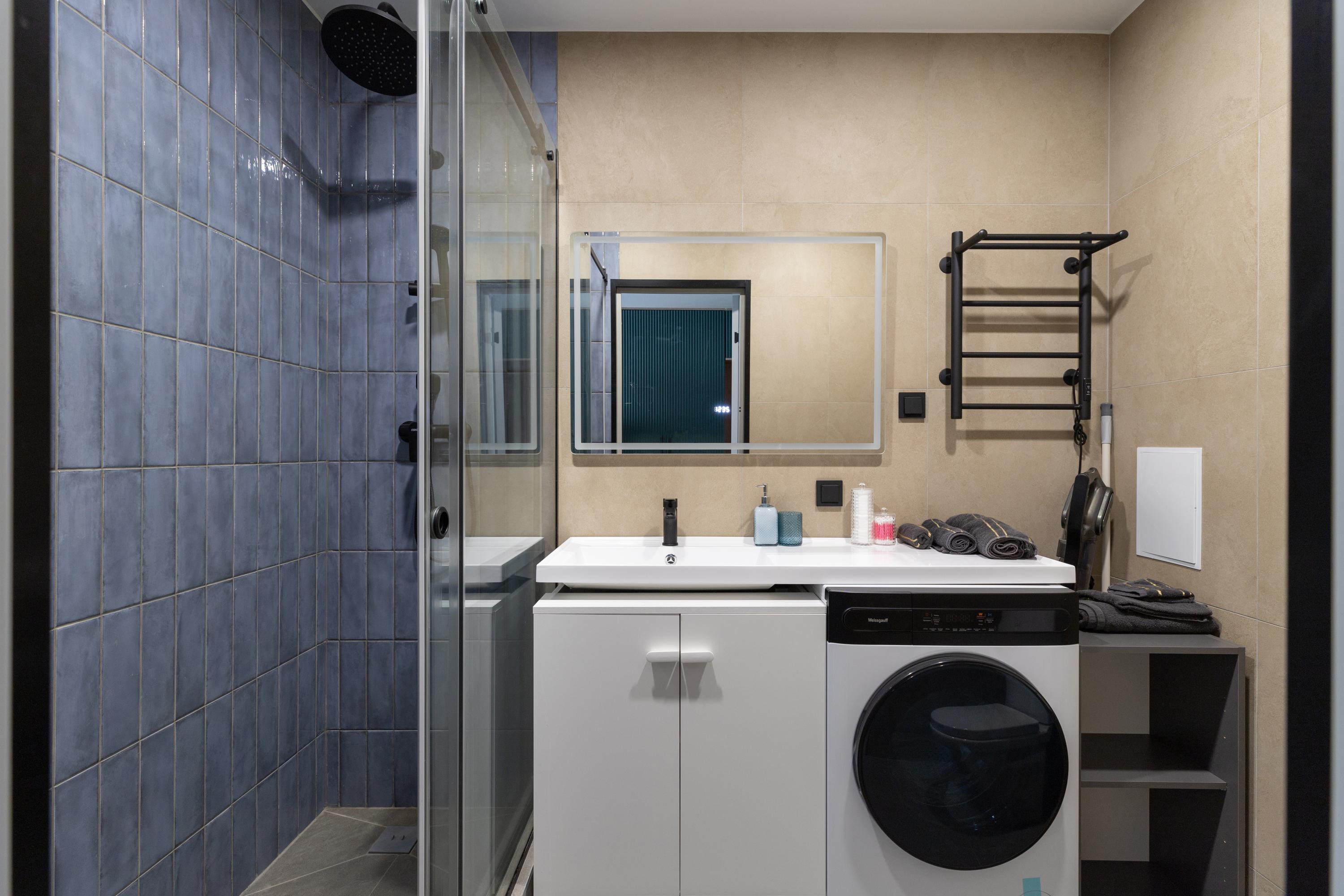 Обустроенная ванная комната с душем предлагает возможность освежиться после долгого дня. Мы предоставляем свежие полотенца и элементы гигиены для вашего удобства.