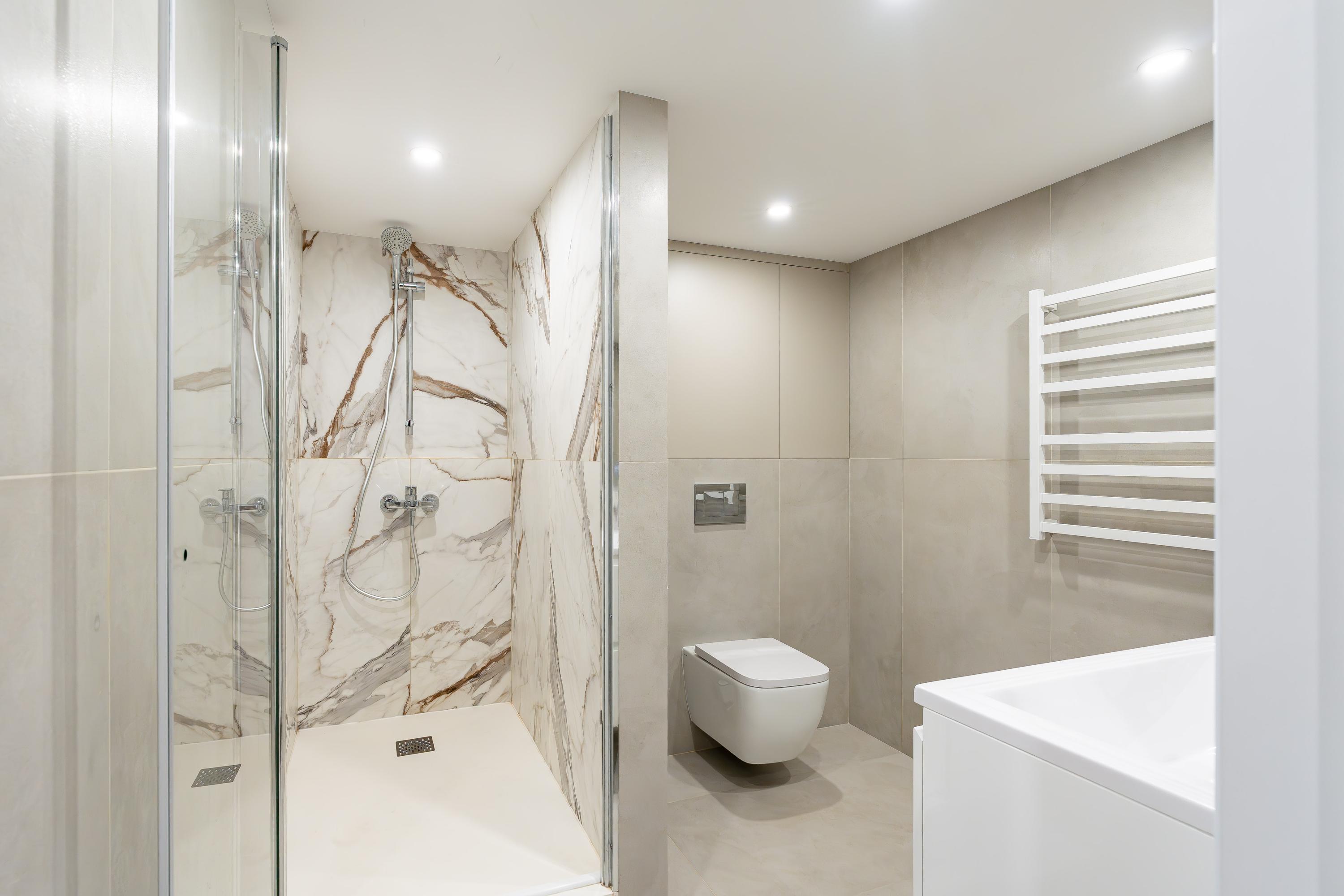 Обустроенная ванная комната с душем предлагает возможность освежиться после долгого дня. Мы предоставляем свежие полотенца и элементы гигиены для вашего удобства.